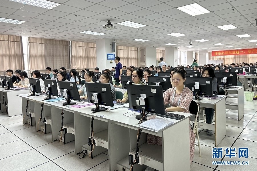 6月13日,全國(guó)統(tǒng)考科目西南大學(xué)評(píng)卷點(diǎn),評(píng)卷教師正在閱卷。新華網(wǎng) 彭浩然 攝