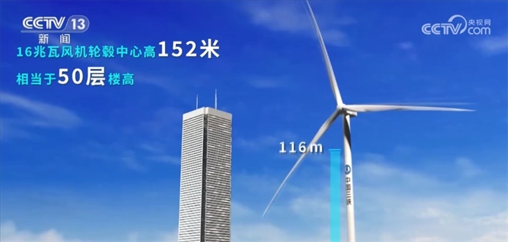 剛才我們看到的葉片只是風(fēng)電機(jī)組的一部分,那么這臺16兆瓦超大容量海上風(fēng)電機(jī)組整體有多大?它的發(fā)電能力如何?我們一起通過一組數(shù)字更直觀地了解它。