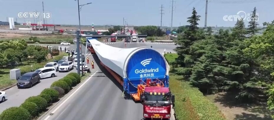 央視網消息:今天(6月14日)上午,100%我國自主知識產權的123米超長海上風電葉片在江蘇連云港啟動陸地轉運工作。上午9時,代表著我國風電裝備最新技術水準的大葉片,從廠區(qū)到港口碼頭,陸地運輸全程約30公里,耗時約3到4個小時,其中運輸大葉片的車輛還要拐過90度的直角彎。如此大體量的裝備運輸是一個復雜的過程,其中有哪些技術難點?來看記者今天上午從現場發(fā)回的報道。