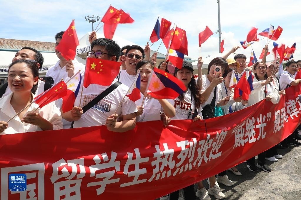 6月14日,在菲律賓馬尼拉港,人們熱烈歡迎來訪的中國海軍戚繼光艦。