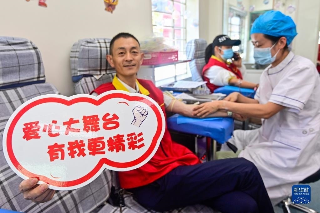 6月14日,市民在云南省麗江市祥和商業(yè)廣場的流動獻血車內(nèi)獻血。 新華社發(fā)(趙慶祖攝)