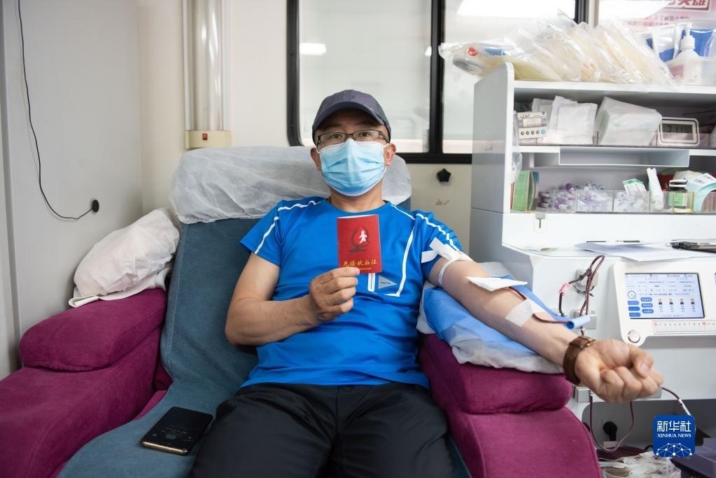 6月14日,市民在安徽省合肥市肥東縣血站無償獻血室進行獻血前檢驗。