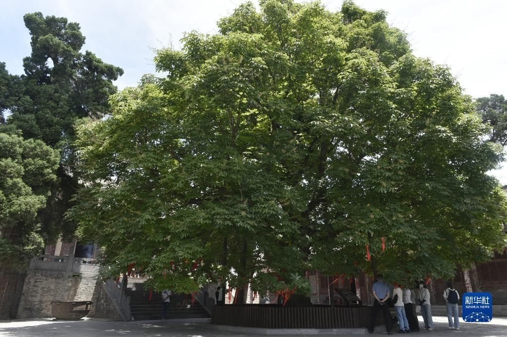 6月15日,游人在王屋山上參觀一棵古樹(shù)。