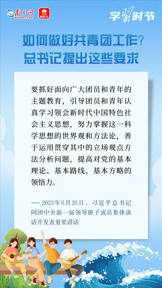 6月26日,習(xí)近平總書記同團(tuán)中央新一屆領(lǐng)導(dǎo)班子成員集體談話并發(fā)表重要講話??倳洀?qiáng)調(diào),黨和國(guó)家事業(yè)的希望寄托在青年身上。希望共青團(tuán)中央深入貫徹黨中央要求,切實(shí)肩負(fù)起新時(shí)代新征程黨賦予的使命任務(wù),傳承弘揚(yáng)優(yōu)良傳統(tǒng),堅(jiān)持改革創(chuàng)新,更好把青年一代團(tuán)結(jié)凝聚在黨的周圍,為推進(jìn)強(qiáng)國(guó)建設(shè)、民族復(fù)興偉業(yè)接續(xù)奮斗。