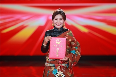 中宣部分管日常工作的副部長(zhǎng)、文化和旅游部部長(zhǎng)胡和平(左一) 教育部黨組書記、部長(zhǎng)懷進(jìn)鵬(右一) 為最美教師和最美教師團(tuán)隊(duì)頒獎(jiǎng)