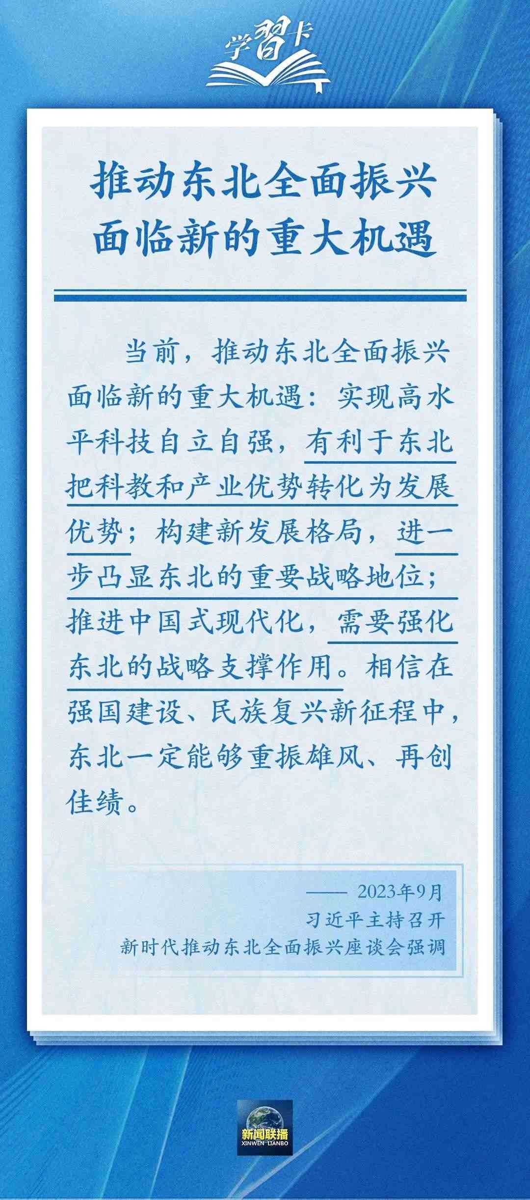 近日,習(xí)近平主持召開(kāi)新時(shí)代推動(dòng)?xùn)|北全面振興座談會(huì)強(qiáng)調(diào),牢牢把握東北的重要使命,奮力譜寫(xiě)東北全面振興新篇章。