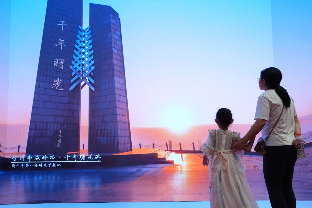 一對母女在杭州舉行的大道之行——“八八戰(zhàn)略”實施20周年大型主題展覽上觀看展示浙江建設成就的視頻(2023年9月9日攝)。新華社記者 翁忻旸 攝