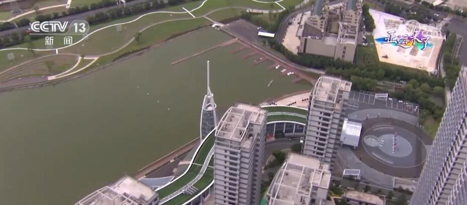 總臺記者 梁燁:但是要說溫州什么運(yùn)動最熱鬧,那就肯定是龍舟了。我們現(xiàn)在看到的是溫州龍舟運(yùn)動中心,這里是全亞洲最高標(biāo)準(zhǔn)的龍舟賽場。我們從空中俯瞰,整棟樓看起來非常狹長,并且高低起伏猶如山脈,就好像是一條龍靜臥在水面之上,因此,這幢樓也被稱為“龍樓”。比賽時,這里主要作賽事保障用途。緊挨著龍樓的這座,從正面看像是船槳,從側(cè)面看像龍舟的建筑就是舟塔,這也是比賽的終點(diǎn)塔。比賽期間,裁判員們就會在這里觀看比賽,在這里計(jì)時計(jì)分。此時此刻,我們看到水面上正在進(jìn)行演練,他們所劃行的這1200米的賽道到時候就是龍舟的比賽場地。