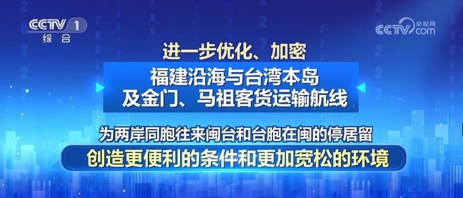 二是進一步優(yōu)化、加密福建沿海與臺灣本島及金門、馬祖客貨運輸航線,為兩岸同胞往來閩臺和臺胞在閩的停居留,創(chuàng)造更便利的條件和更加寬松的環(huán)境。
