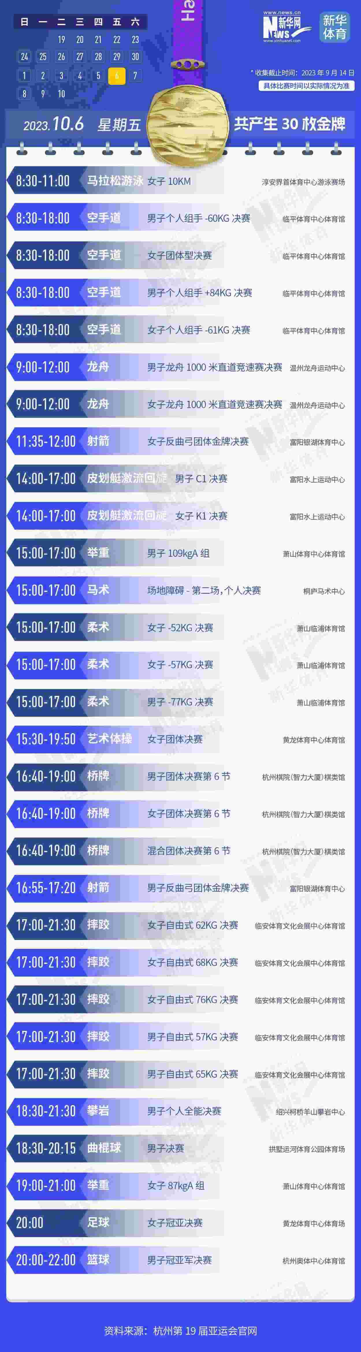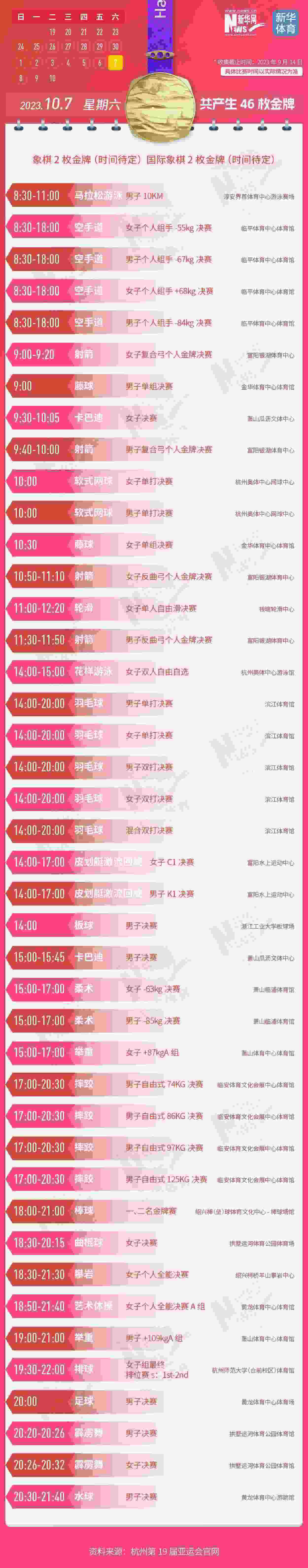 杭州第19屆亞運會即將開幕。本屆亞運會將產(chǎn)生481枚金牌,快收藏這份金牌賽事日歷,助你精準觀賽!