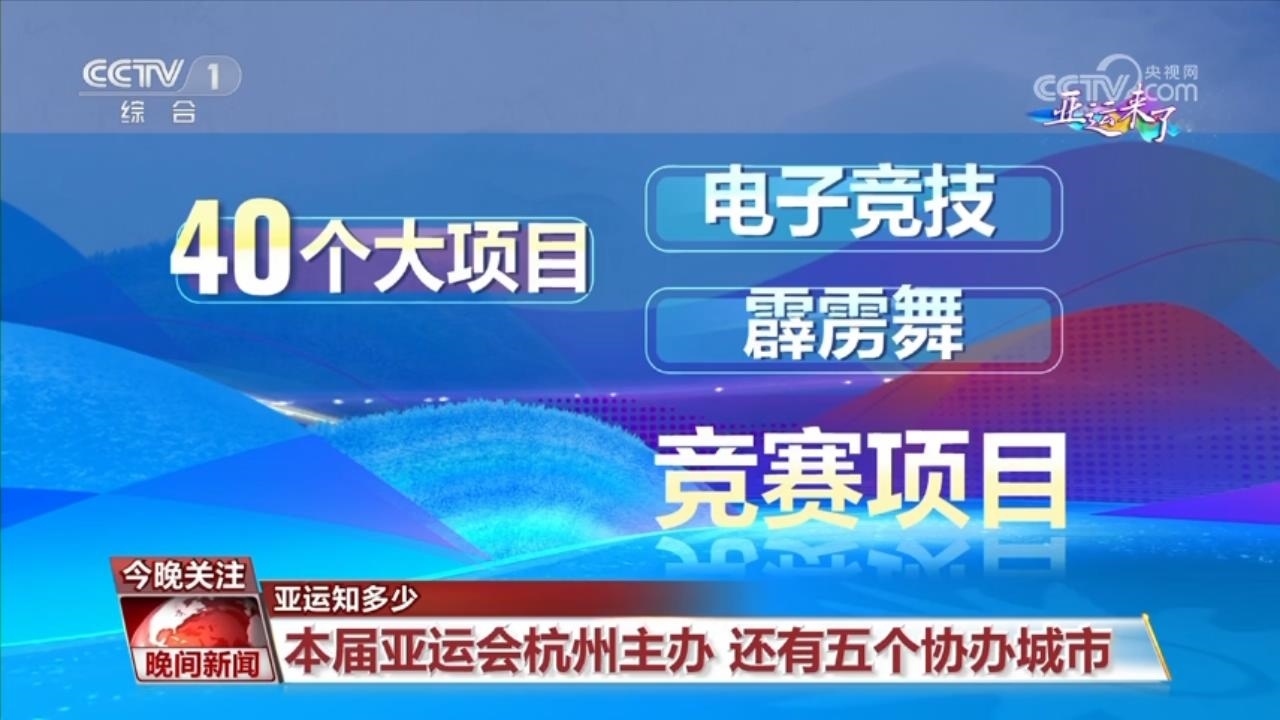 杭州亞運(yùn)會(huì)以杭州為主辦城市,寧波、溫州、湖州、紹興、金華為五個(gè)協(xié)辦城市。本屆亞運(yùn)會(huì)競賽項(xiàng)目在保持40個(gè)大項(xiàng)目不變的前提下,增設(shè)電子競技、霹靂舞兩個(gè)競賽項(xiàng)目。16個(gè)比賽日,預(yù)計(jì)共產(chǎn)生482枚金牌。?