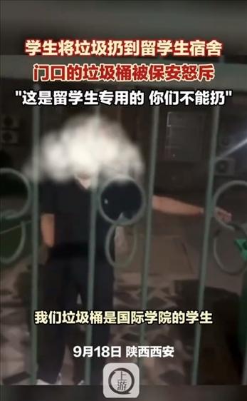 ·西安交大學生用留學生宿舍垃圾桶遭保安怒斥,學校回應(yīng):會對相關(guān)人員進行批評教育。