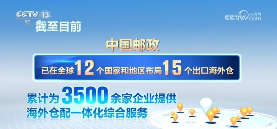 截至目前,中國郵政已在全球12個國家和地區(qū)布局了15個出口海外倉,累計為3500余家企業(yè)提供海外倉配一體化綜合服務(wù)。