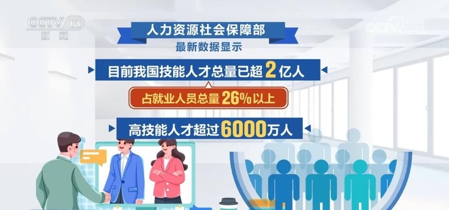 人力資源社會(huì)保障部數(shù)據(jù)顯示,目前,我國(guó)技能人才總量已超2億人,占就業(yè)人員總量26%以上;高技能人才超過6000萬(wàn)人。各類技能人才活躍在生產(chǎn)一線和創(chuàng)新前沿,成為推動(dòng)高質(zhì)量發(fā)展的重要力量。