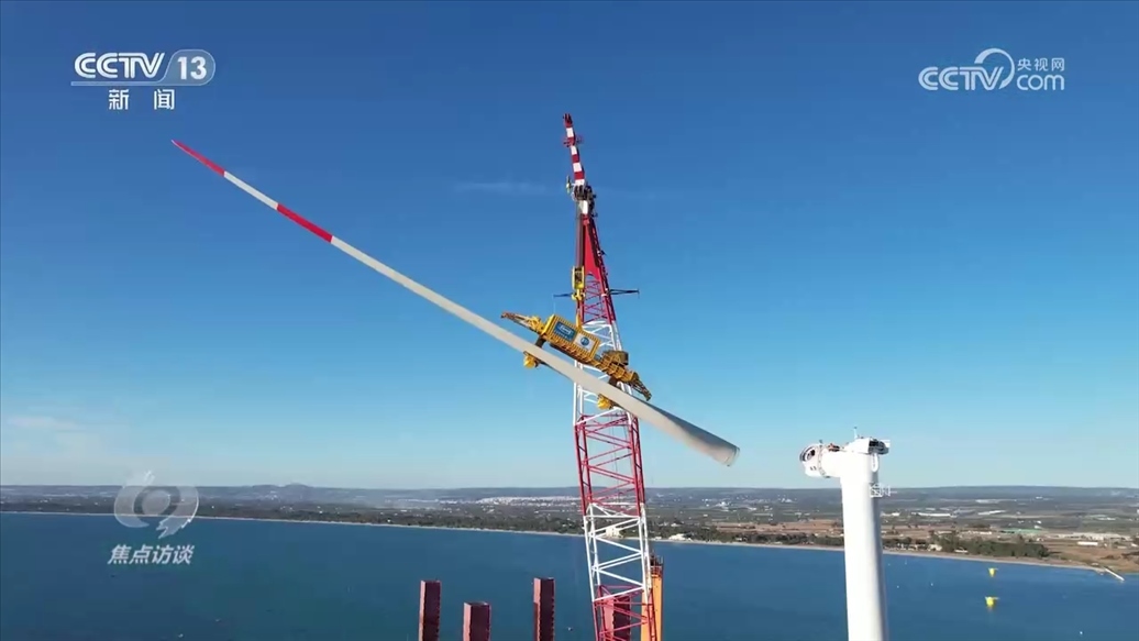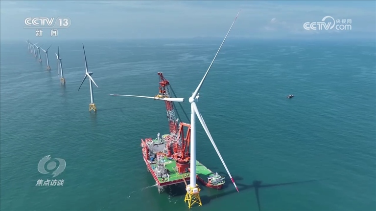 明陽集團黨委書記、董事長張傳衛(wèi):“18兆瓦的風(fēng)機葉輪直徑可以達到290米,它轉(zhuǎn)一圈就可以發(fā)到60度電,一年下來可以發(fā)1億度電,覆蓋10萬個家庭用電,減少7萬噸的二氧化碳排放?!?/p>