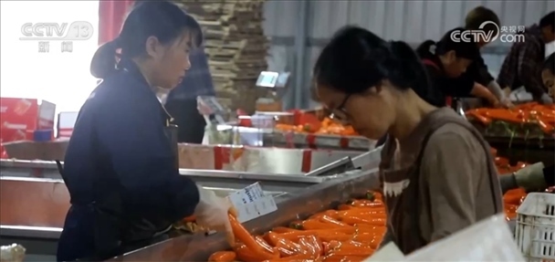 在離種植基地不遠(yuǎn)處的加工車間,一根根胡蘿卜經(jīng)過清洗、打包等一系列處理后,最終經(jīng)冷鏈物流發(fā)往全國各地。