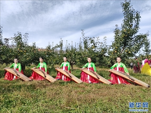 蘋(píng)果梨樹(shù)下的演奏 ?黃維攝/新華網(wǎng)發(fā)