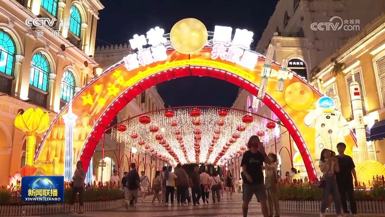 香港大街小巷張燈結彩,喜迎中秋、國慶,彩燈、走馬燈、各色花燈裝點著城市夜色。在澳門,以“中秋喜相逢 國慶共歡騰”為主題的燈飾點亮大街小巷,吸引大批市民和游客打卡留念。