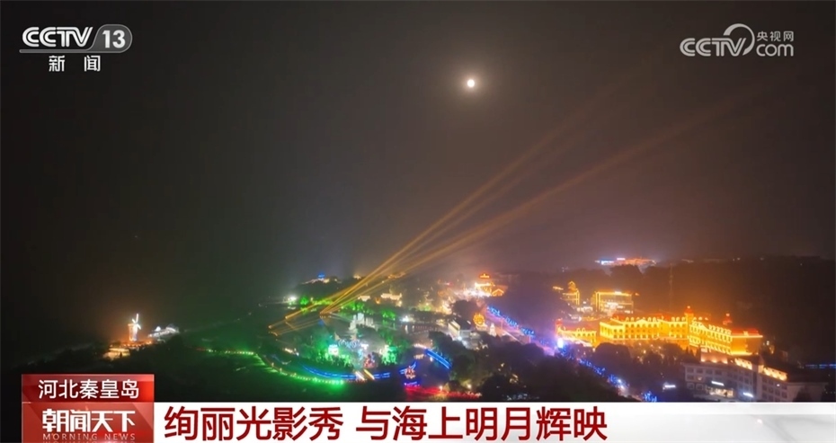 海上生明月,天涯共此時。在9月29日中秋夜,一輪圓月從海上升起,皎潔的月光照在北戴河的海灣之上。為觀賞中秋明月,大批的游客來到了北戴河當?shù)刈罴训馁p月地鴿子窩公園。為使中秋夜變得更璀璨,鴿子窩公園打造了以“海上奇幻夜”為主題的光影秀。絢麗的燈光流光溢彩,與中秋明月相輝映,碧海、月色與光影給前來賞月的游客帶來了旅游新體驗。