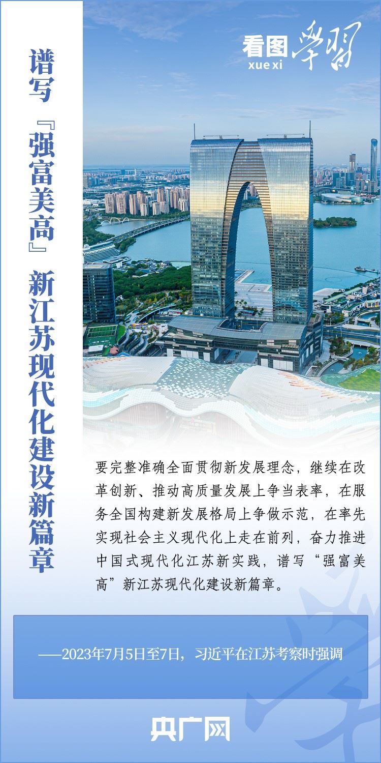 7月5日至7日,習近平總書記先后來到蘇州、南京等地,深入工業(yè)園區(qū)、企業(yè)、歷史文化街區(qū)、科學實驗室等進行調(diào)研??倳洀娬{(diào),要奮力推進中國式現(xiàn)代化江蘇新實踐,譜寫“強富美高”新江蘇現(xiàn)代化建設(shè)新篇章。一起來學習!