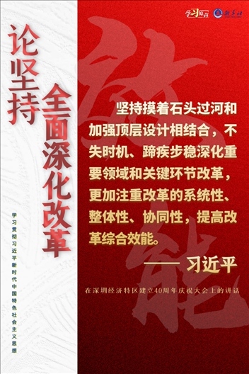 改革開放是決定當(dāng)代中國命運(yùn)的關(guān)鍵一招。黨的十八大以來,習(xí)近平總書記高舉改革開放旗幟,對全面深化改革提出一系列重要論斷、作出一系列戰(zhàn)略部署,創(chuàng)造性提出全面深化改革的總目標(biāo)是完善和發(fā)展中國特色社會主義制度、推進(jìn)國家治理體系和治理能力現(xiàn)代化。