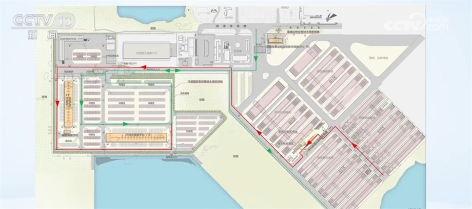 海南洋浦保稅港區(qū)發(fā)展局局長(zhǎng) 張洪光:紅色的就是一線的流線,綠色的就是二線的流線,它們是不交叉的,如果需要查驗(yàn)的話,它們是可以共用這個(gè)查驗(yàn)平臺(tái)的。我做這樣的最終目的也是確保一線真正能夠放開(kāi),二線能夠真正管住。