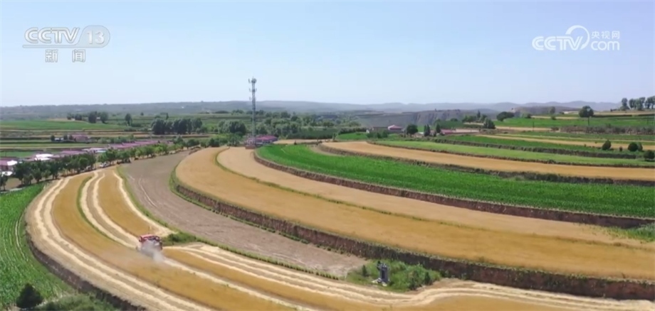 合道鎮(zhèn)趙家塬村村民 敬志軍:今年種了10畝小麥,一共是20畝地,我還種了10畝玉米。今年天(氣)干(旱),收割機第一次來我就開收,趁著天曬,我這麥子好些,一畝地打六七百斤。