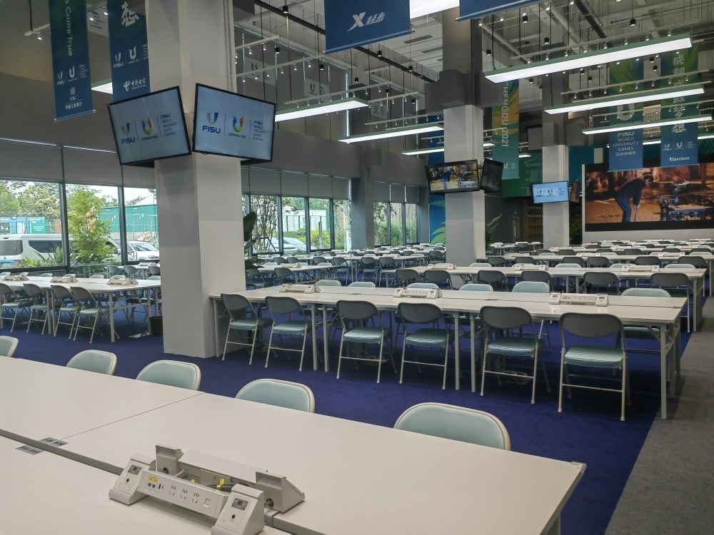 成都大運會主媒體中心內(nèi)的媒體工作區(qū)。新華社記者董小紅攝