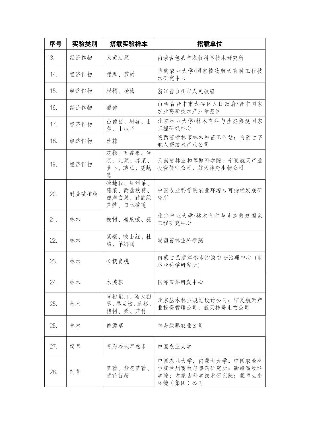 央視網(wǎng)消息:據(jù)中國載人航天公眾號消息,7月19日,中國載人航天工程辦公室公布神舟十六號載人飛船航天育種實驗項目清單,詳情如下: