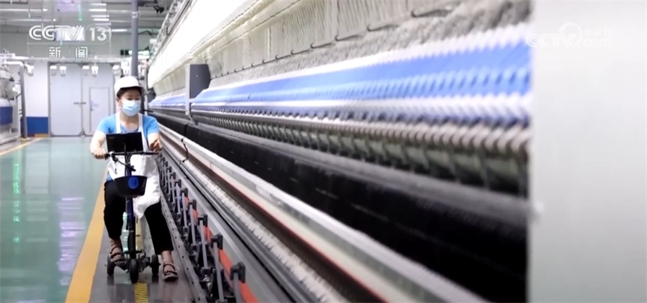 總臺(tái)央視記者 鄭怡哲:用于服裝的精梳棉紗,從棉花種植、軋花到加工成粗紗、細(xì)紗,再到成品運(yùn)輸、入庫,全流程下來,1千克棉紗的碳足跡值僅為4公斤左右的二氧化碳。在這條直徑不到0.1mm的紗線上,要滿足強(qiáng)度、透氣、舒適性等指標(biāo),同時(shí)也要兼顧節(jié)能、環(huán)保和碳排放。要在這條細(xì)細(xì)的紗線上做出如此大的文章,離不開企業(yè)的高質(zhì)量發(fā)展和科技的支持。