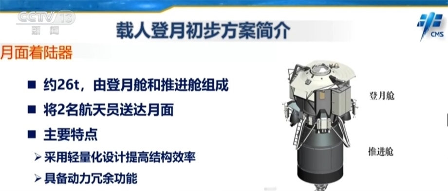 目前,我國載人登月的初步方案是:采用兩枚運載火箭分別將月面著陸器和載人飛船送至地月轉(zhuǎn)移軌道,飛船和著陸器在環(huán)月軌道交會對接,航天員從飛船進入月面著陸器。其后,月面著陸器將下降著陸于月面預(yù)定區(qū)域,航天員登上月球開展科學(xué)考察與樣品采集。在完成既定任務(wù)后,航天員將乘坐著陸器上升至環(huán)月軌道與飛船交會對接,并攜帶樣品乘坐飛船返回地球。為完成這項任務(wù),我國科研人員正在研制長征十號運載火箭、新一代載人飛船、月面著陸器、載人月球車等裝備。