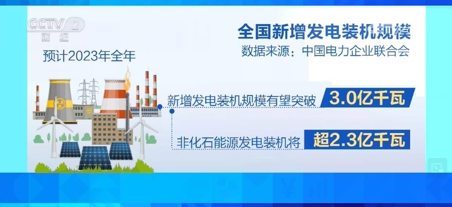 據(jù)預(yù)計(jì),2023年全年,全國新增發(fā)電裝機(jī)規(guī)模有望突破3.0億千瓦,其中,非化石能源發(fā)電裝機(jī)將超過2.3億千瓦。到2023年底,全國發(fā)電裝機(jī)容量預(yù)計(jì)將達(dá)到28.6億千瓦,同比增長11.5%左右。其中,并網(wǎng)風(fēng)電和太陽能發(fā)電合計(jì)裝機(jī)容量將達(dá)到9.6億千瓦,占總裝機(jī)的三分之一。