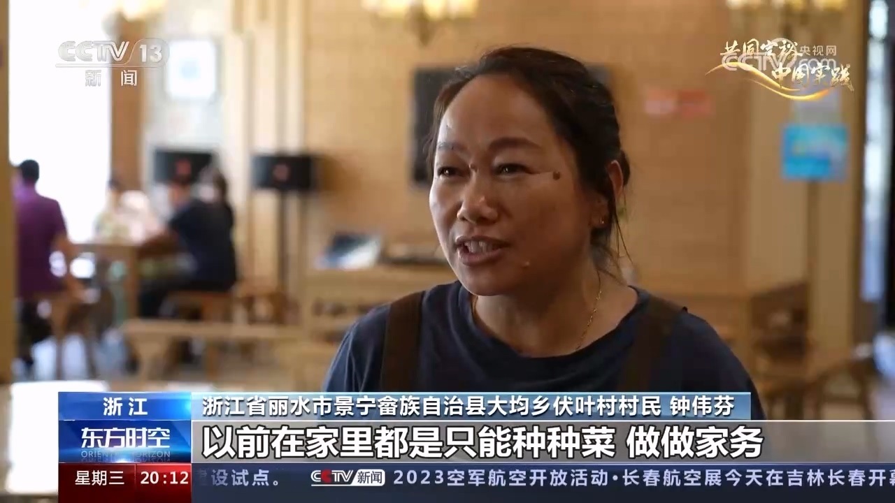 浙江省麗水市景寧畬族自治縣大均鄉(xiāng)伏葉村村民 鐘偉芬:以前在家里都只能種種菜、做家務(wù),別的一分錢(qián)都掙不來(lái),現(xiàn)在在家門(mén)口(就業(yè))。這里的服務(wù)員全部都是我們本村的,五六十歲了,出去打工也沒(méi)人要,在這里干干服務(wù)員一個(gè)月還能收入三千,這也很好的。