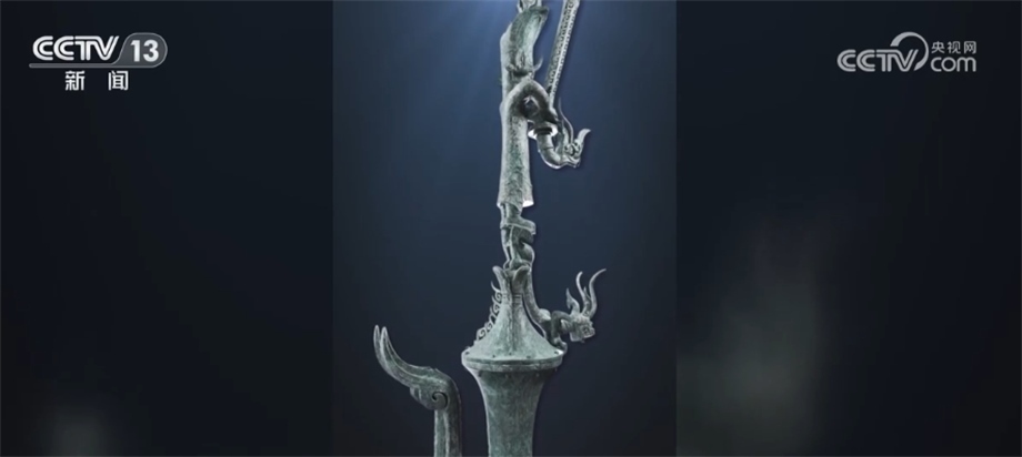 北京大學考古文博學院副教授 趙昊:為什么我們不直接把這件器蓋放在這個尊之上,或者包括那個持龍人像放在器蓋之上,這涉及到一個文物安全的問題。因為相對來說這些器物本體已經(jīng)有一些變形,第二就是它長期埋在地下,本體已經(jīng)變得比較疏松了,如果我們將它原來整體復原蓋在一起,重量會很大,可能對于下面的支撐壓迫比較重。
