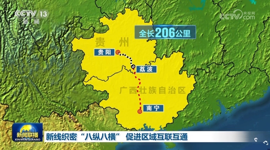 貴南高鐵連接貴陽和南寧,是“八縱八橫”高鐵網(wǎng)包頭至??谕ǖ赖闹匾M成部分。正線全長482公里,是黔桂兩地首條設(shè)計時速達350公里的高速鐵路。此次開通的貴陽至荔波段,全長206公里,貴陽至荔波最快只需57分鐘。