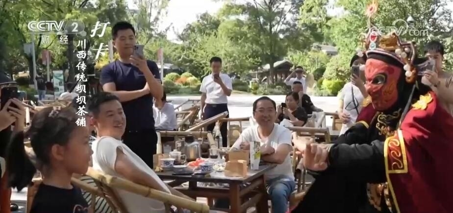 成都臺記者 劉然然:打卡中國消費新地標(biāo),今天我來到了位于四川成都高新區(qū)的鐵像寺水街。今天第一項,我們來打卡鐵像寺水街的川味元素。在我身后這個古香古色的戲臺,不定期就會有川劇、變臉、茶藝等表演,花上十幾塊錢泡碗茶,就能在這里享受一天的安逸生活。