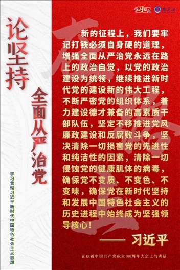 治國必先治黨,黨興才能國強。新征程上,我們要始終推進黨的自我革命。一個飽經(jīng)滄桑而初心不改的黨,才能基業(yè)常青;一個鑄就輝煌仍勇于自我革命的黨,才能無堅不摧。
