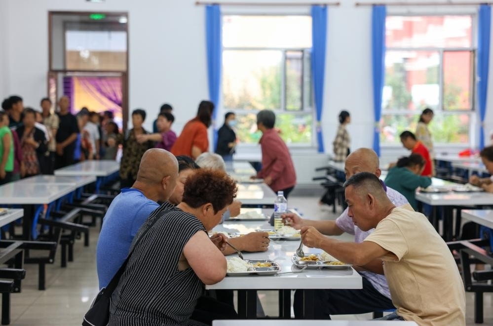 8月11日,村民在舒蘭三中安置點(diǎn)食堂里吃飯。新華社記者顏麟蘊(yùn) 攝