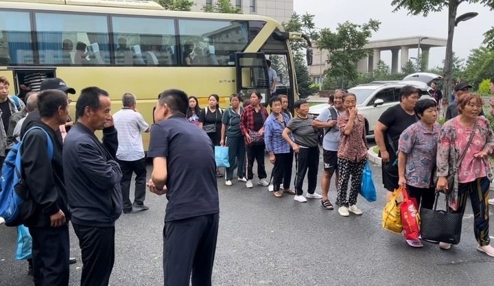 “不著急,慢點兒下,咱這兒有住的、有吃的。”來自五常市民樂鄉(xiāng)的群眾陸續(xù)走下大巴車,已有工作人員等在車前。