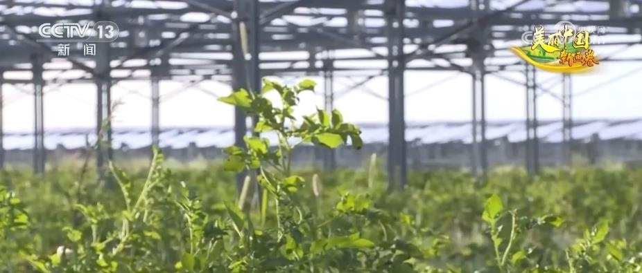 隨著防沙治沙技術(shù)的不斷迭代進(jìn)步,億利資源集團(tuán)引進(jìn)了光伏治沙的理念?,F(xiàn)在,已經(jīng)升級(jí)到最新的第三代技術(shù)。離地8米的光伏板下面,種了馬鈴薯、西紅柿等作物,其中,馬鈴薯畝產(chǎn)能達(dá)到4000公斤,而且大型機(jī)械可以在里面作業(yè)。在利用光伏治沙的過(guò)程中,田旺和他的團(tuán)隊(duì)還開(kāi)創(chuàng)了畜禽草耦合治沙技術(shù),利用光伏板下的空間發(fā)展生態(tài)養(yǎng)殖。