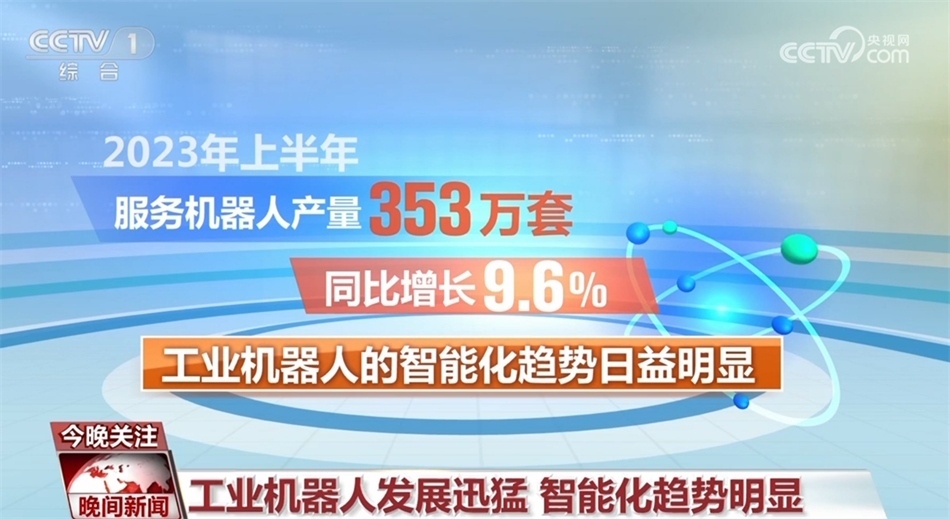 據(jù)了解,我國工業(yè)機(jī)器人銷量已占全球的一半以上,連續(xù)10年居世界首位。2023年上半年,工業(yè)機(jī)器人產(chǎn)量達(dá)到了22.2萬套,同比增長5.4%,服務(wù)機(jī)器人產(chǎn)量353萬套,同比增長9.6%。同時(shí),工業(yè)機(jī)器人的智能化趨勢日益明顯。
