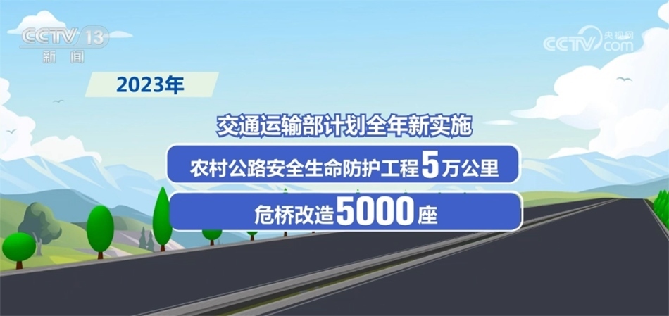 今年,交通運(yùn)輸部計(jì)劃全年新實(shí)施農(nóng)村公路安全生命防護(hù)工程5萬(wàn)公里和危橋改造5000座。截至7月底,全國(guó)已實(shí)施農(nóng)村公路安全生命防護(hù)工程4.7萬(wàn)公里,改造農(nóng)村公路危橋4033座。
