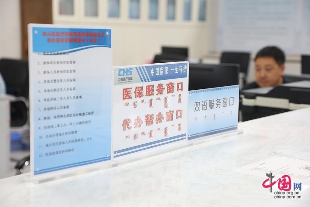 臨潢家園社區(qū)服務(wù)于轄區(qū)各民族居民,在服務(wù)中心內(nèi)搭建了公共服務(wù)平臺,竭力促進(jìn)民族團(tuán)結(jié)進(jìn)步,維護(hù)社區(qū)的和諧穩(wěn)定。圖為臨潢家園社區(qū)便民服務(wù)中心內(nèi)的雙語服務(wù)窗口。中國網(wǎng)記者 倫曉璇 攝