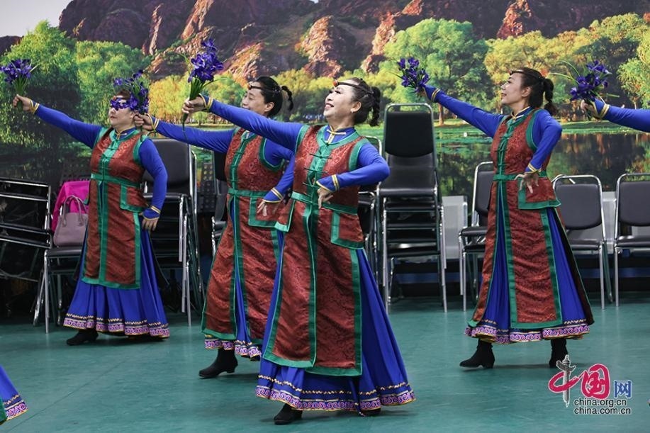 在臨潢家園社區(qū)便民服務(wù)中心內(nèi),由社區(qū)里各民族居民組成的烏蘭牧騎小分隊(duì)正在排練廳內(nèi)練習(xí)舞蹈。中國網(wǎng)記者 倫曉璇 攝