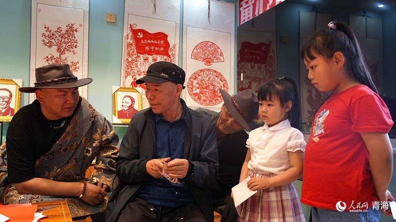 “紅紙對折,再對折,先剪出大概輪廓,再剪蝴蝶的觸角,剪刀要慢……”青海省海南藏族自治州貴德縣河陰鎮(zhèn)歇春園社區(qū)紅石榴之家內(nèi),剪紙藝人楊成君正帶領(lǐng)社區(qū)幾名小孩學習剪紙,幾位藏族居民也在旁邊饒有興趣地旁觀。