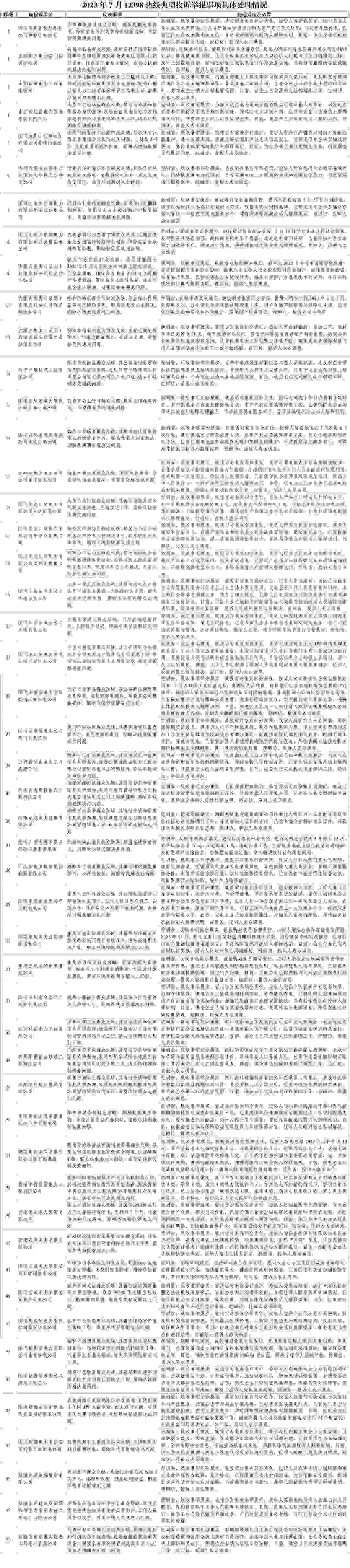 投訴舉報(bào)量靠前的2個(gè)省份為四川(31件)、黑龍江(28件)。