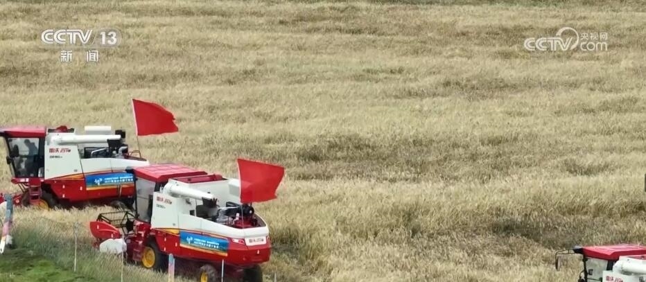 阿壩縣是四川省青稞主產區(qū)之一,獨特的地理位置和氣候特點,讓這里的青稞連年豐收。8月28日,在阿壩州阿壩縣龍藏鄉(xiāng)的青稞園區(qū),村民們忙碌的身影活躍在田間,割青稞、捆青稞,分工合作,一氣呵成,不一會兒,大片的青稞便完成收割。遠處十幾臺大型收割機一字排開穿梭在青稞田里,快速翻滾,一展現(xiàn)代化、高科技收割技術,確保糧食顆粒歸倉。