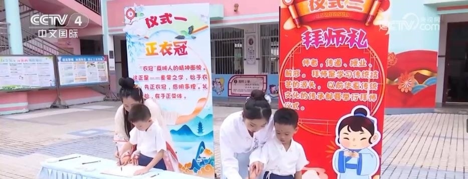8月28日,廣西南寧市中小學(xué)校、幼兒園迎來了秋季學(xué)期。在南寧市新陽路小學(xué),300多名一年級新生參加了一場中華傳統(tǒng)入學(xué)“開筆禮”。同學(xué)們身著傳統(tǒng)服飾,依次進(jìn)行禮正衣冠、行拜師禮、朱砂點(diǎn)痣、擊鼓明志、開筆啟蒙等傳統(tǒng)儀式。
