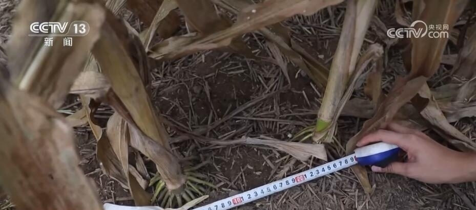 我們扒開(kāi)田里的玉米看一下,可以看到玉米色澤金黃,而且顆粒飽滿,這說(shuō)明玉米的品質(zhì)是非常好的。除此之外,這個(gè)玉米品種還有一個(gè)特點(diǎn)就是耐密。一般的玉米株距在28—30cm,我們拿尺子測(cè)量一下,玉米株距大約在24cm,相對(duì)一般玉米比較小,這樣每畝地種植的玉米株數(shù)更多,產(chǎn)量也就相對(duì)較高。
