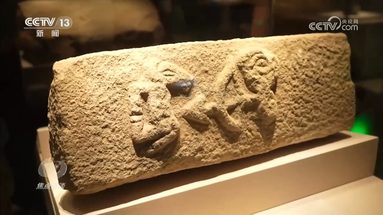 龜甲出土于河南省漯河市舞陽(yáng)縣賈湖遺址,當(dāng)時(shí)遺址內(nèi)發(fā)現(xiàn)17例刻在龜甲、骨器上的符號(hào),內(nèi)容都與占卜相關(guān),被稱為賈湖刻符。符號(hào)圖畫為我們揭開(kāi)了祖先們當(dāng)時(shí)的生活圖景?!叭松漶R石雕”出土于陜西榆林神木市石峁遺址,在距今約4000年前,先人們以浮雕的方式成圖,一人持弓箭射馬,弓、弦、箭一樣不少。